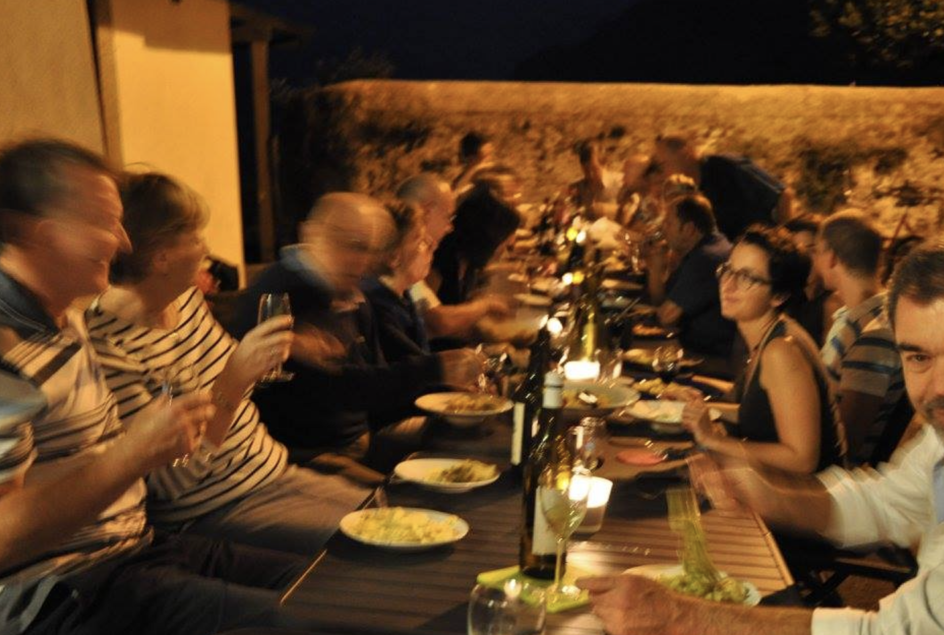François-Xavier reçoit membres, prospects et leurs amis au Coeur du Vignoble pour un repas amical dans la Ruelle des Petites Dolles. Quoi de mieux que de partager de délicieux mets et vins en bonne compagnie, lors d'une soirée de fin d'été, à la lueur de quelques bougies et lampadaires romantiques...